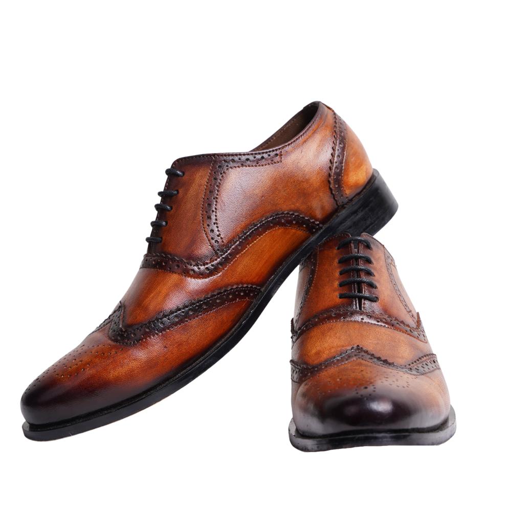Introducing our unique Oxford-style shoe in rich brown wood, boasting a dotted toe cap design and intricate detailing wrapping around the body. Combining classic elegance with contemporary flair, these Oxfords showcase craftsmanship and sophistication.