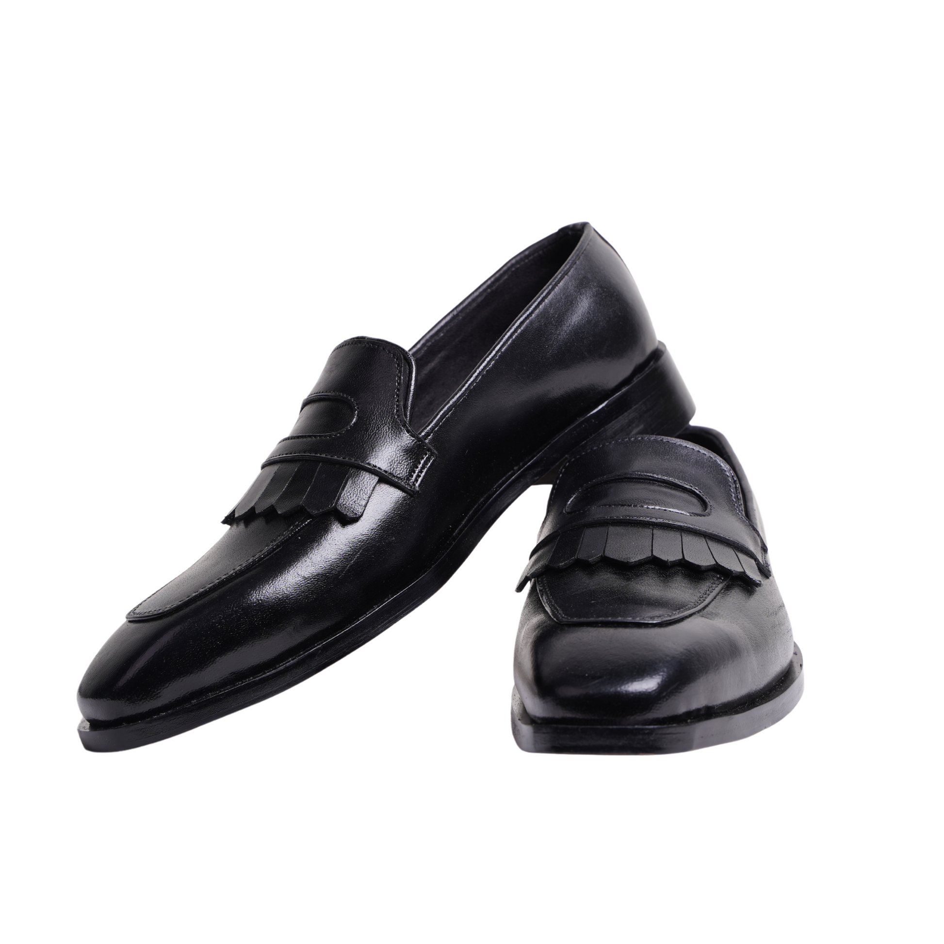 Our jet-black kiltie-penny loafer is a seamless blend of classic sophistication and modern flair, ideal for semi-formal to formal events. With its timeless charm and distinctive detailing, this versatile loafer is crafted for those seeking a polished and refined look, making it the perfect choice for a range of occasions.